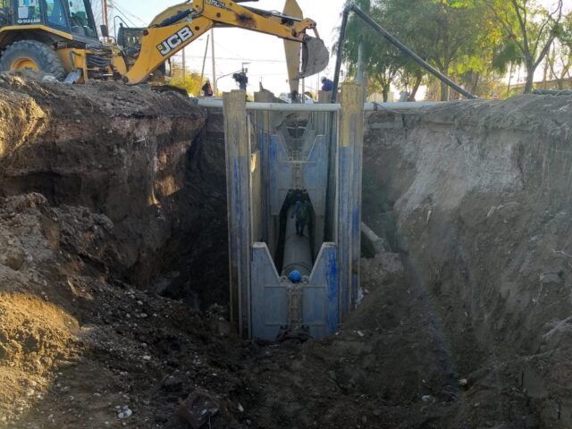 Durante la Dirección de Obra General, se ejecutaron trabajos de excavación, extracción y reemplazo de una colectora cloacal PRFB de 1.000 metros lineales. Este proyecto incluyó la excavación precisa del terreno para la preparación de zanjas, la extracción cuidadosa de la colectora existente y la instalación de la nueva infraestructura cloacal.
